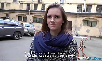 elder guy picks up pretty Russian girl for XXX movie
