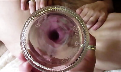Gaping Hairy Pussy PAWG with Glass Bottle Natural Bush