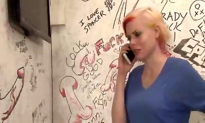 Pixie cut blondie takes lots of glory hole cock