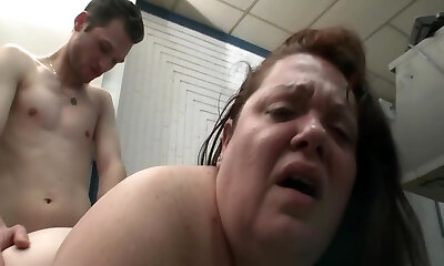 पतला आदमी pulverizes रतालू आकार प्रेमिका बाथरूम में