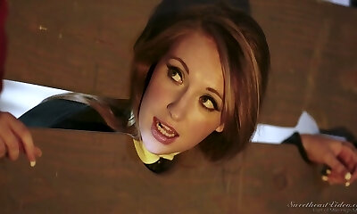 गंदा बालों वाली शरारती सुनहरे बालों वाली है स्थिर में पट्टा बंधन स्थिति और हो जाता है