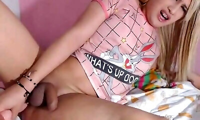 बिना खतना के डिक नम प्रवेश और सह के अंदर ट्रांस आदमी