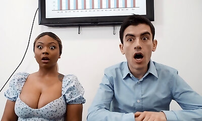 शरारती एवरी और झो के साथ कार्यालय में अंतरजातीय कमबख्त