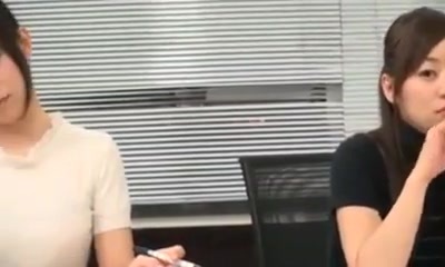 एशियाई कार्यालय फूहड़ विशाल प्राकृतिक स्तन के साथ कार्यालय