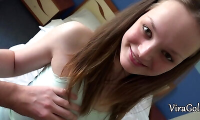 18 यो सौंदर्य पहली बार मुर्गा चूसता है और कैमरे पर चुदाई करता है, और उसके बाद मैं उसे बाहर निकाले बिना उसकी चूत में सह जाता हूँ