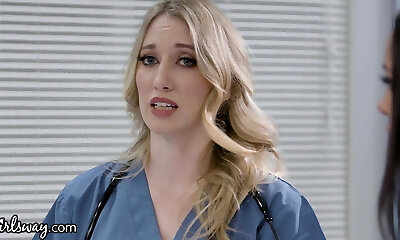 Kinky doctor Angelica Heart joys her foxy nurse Arteya. HD