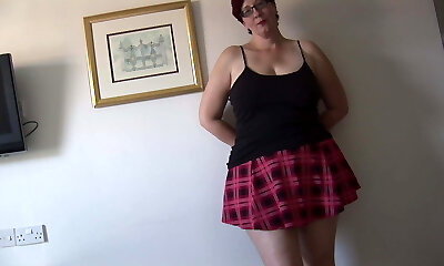18 years old dame screws herself with dildo in mini skirt