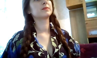 long haired brunette teen in solo masturbation act
