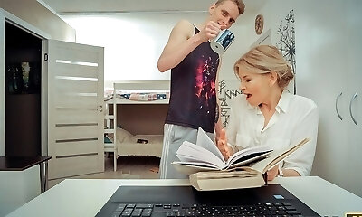 ich helfe meinem schwiegersohn bei seinen hausaufgaben, sein schwanz lenkt mich ab und am ende kehle ich ihn ein
