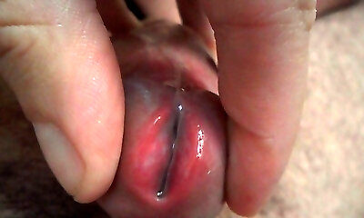 Salivating Pre-Cum from Uncut Cock, Extreme Close-Up
