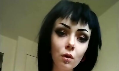 دختر گوتیک سعی می کند اسباب بازی های جنسی جدید