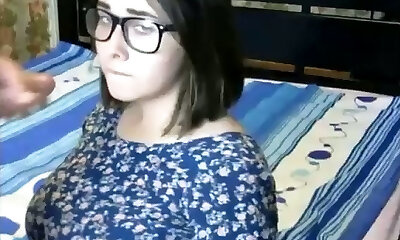 she is nerdy - molly chocolate-colored - huge load on nerdy chick's glasses