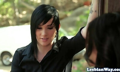 Strapon pulverized lesbo pleasured by goth dyke