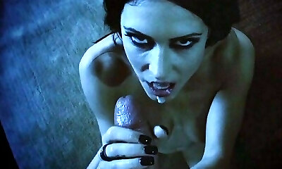 Splendid gothic vampire gives blowjob