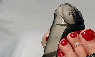 Outstanding Footjob in Black Pantyhose from a Friend's Wife