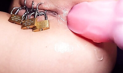 Fisting of Anal when Caged Pierced Beaver Closed by Padlock