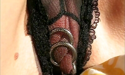 nippleringlover horny milf fingering wet cootchie, multiple rings in pierced labia lips close up