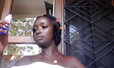 Sexy ebony girl smoking a cigarette in amateur sex clip
