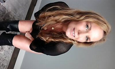 Sultry towheaded with plump ass Dolly displays off her lace panties upskirt